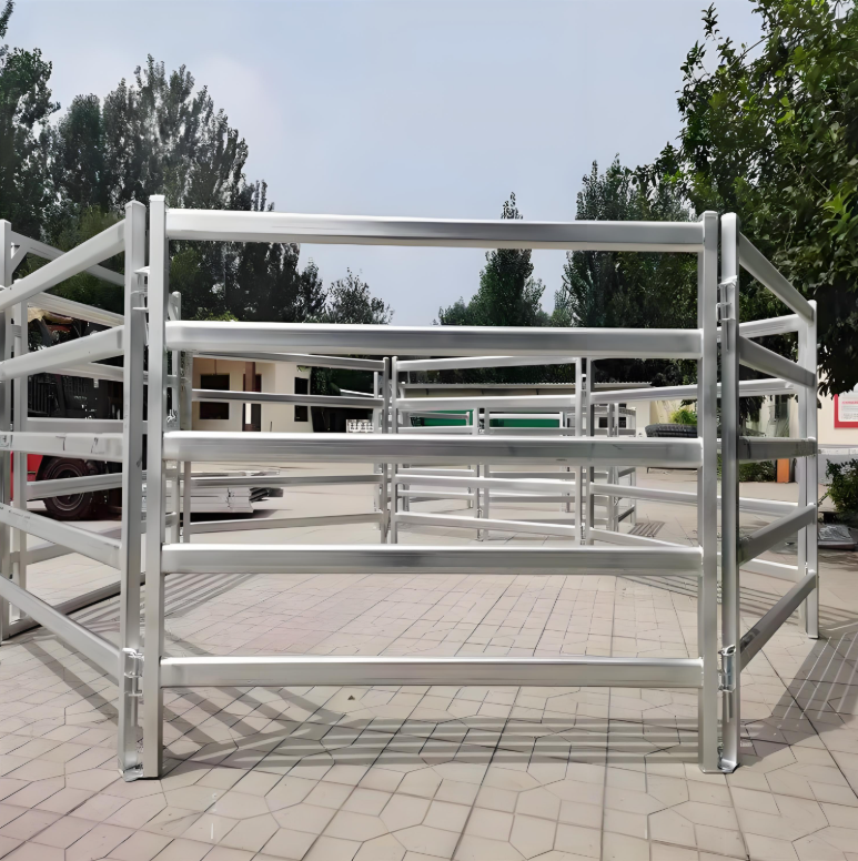 Panneaux pour bétail de haute qualité fabriqués à partir de tubes d'acier galvanisé à chaud de haute qualité, avec 5 ou 6 rails aux dimensions et traitements de surface personnalisables.Comprend des broches et des supports pour les connexions sécurisées, assurant la robustesse et la fiabilité. Certifié ISO9001 pour la gestion de la qualité.
