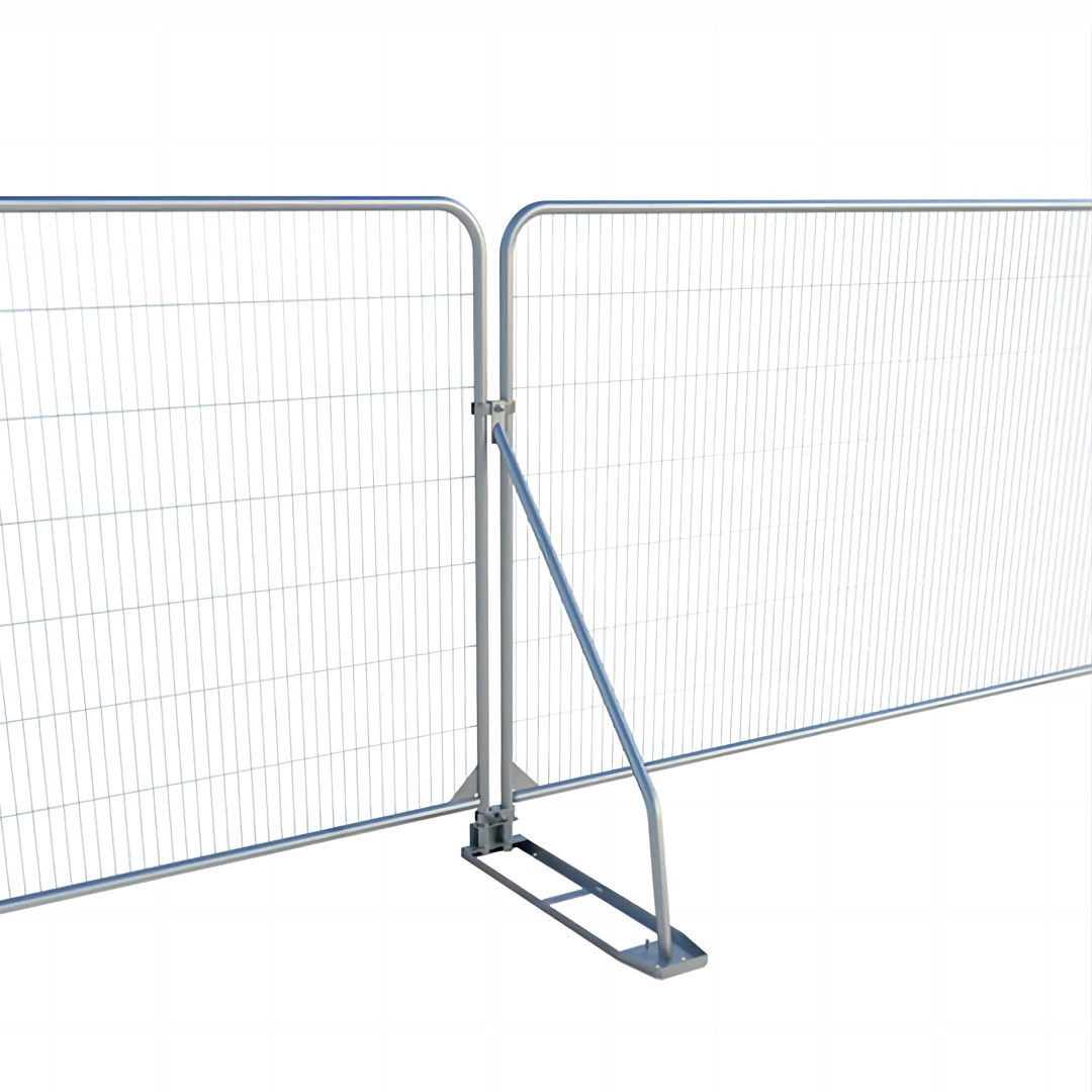 La clôture temporaire, comme son nom l'indique, est un panneau de clôture autoportant et indépendant. Les panneaux sont maintenus ensemble par des pinces qui les emboîtent, ce qui les rend portables et flexibles pour un large éventail d'applications. Les panneaux de clôture sont soutenus par des pieds contrebalancés et disposent d'une grande variété d'accessoires, notamment des portails, des mains courantes, des pieds et des contreventements, en fonction de l'application. Les panneaux de clôture sont généralement construits en grillage ou en treillis soudé.