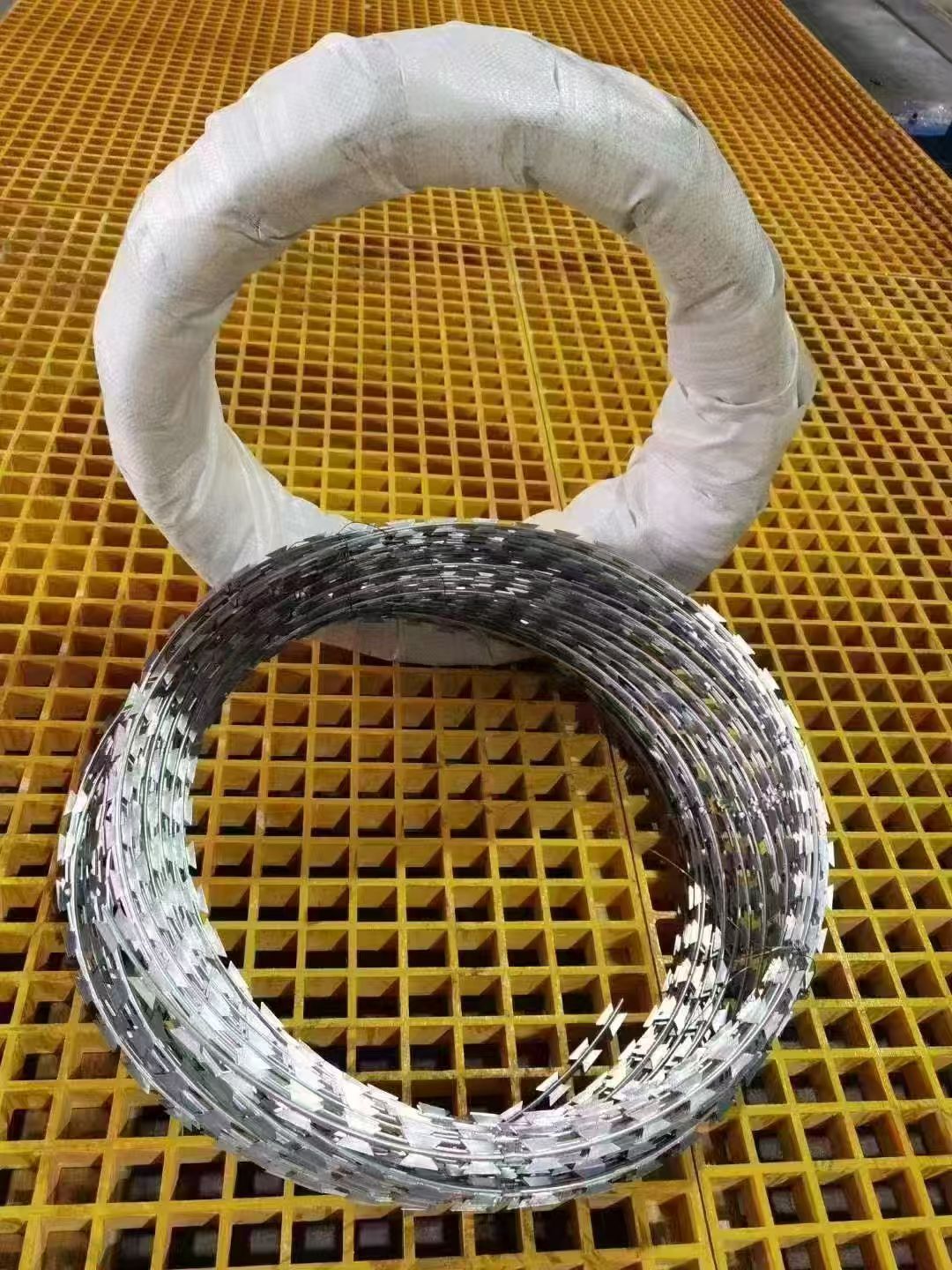 Le filet à lames est un dispositif de barrière fabriqué en pressant des profilés tranchants en forme de lame à partir de tôles d'acier galvanisées à chaud ou de tôles d'acier inoxydable, avec des fils d'acier galvanisés à haute résistance ou des cordes de perforation de lame et des fils d'acier inoxydable comme fils centraux. En raison de sa forme unique, le filet branchial est difficile à toucher et peut ainsi obtenir d'excellents effets de protection et d'isolation. Les principaux matériaux du produit sont la tôle galvanisée et la tôle d'acier inoxydable.